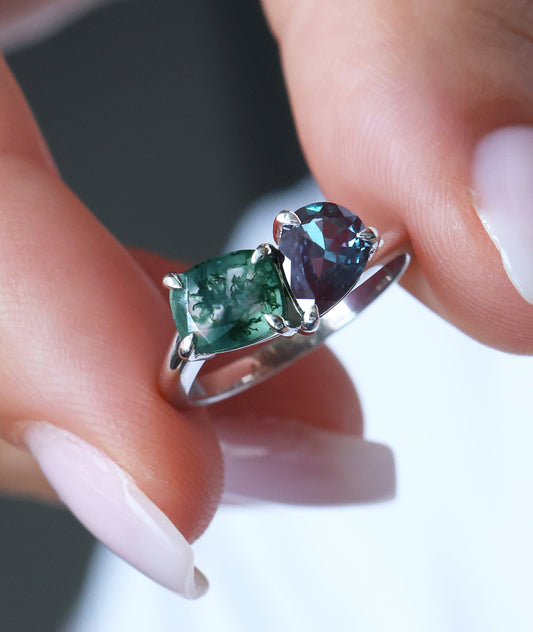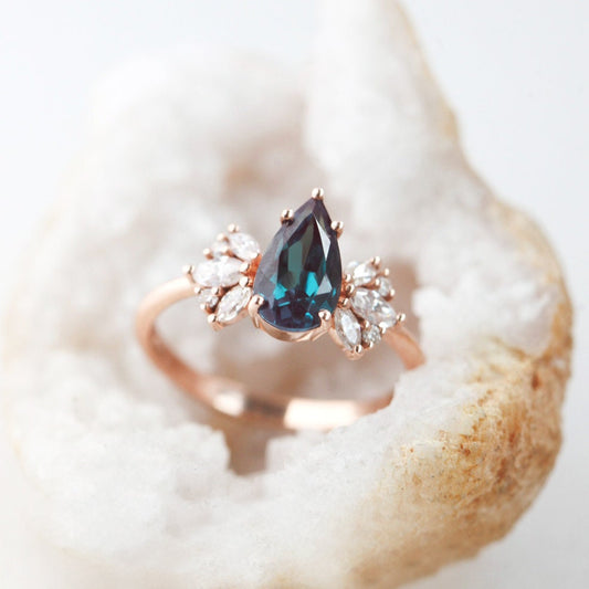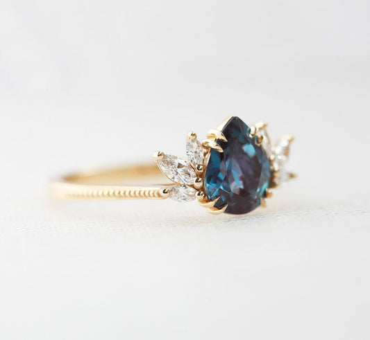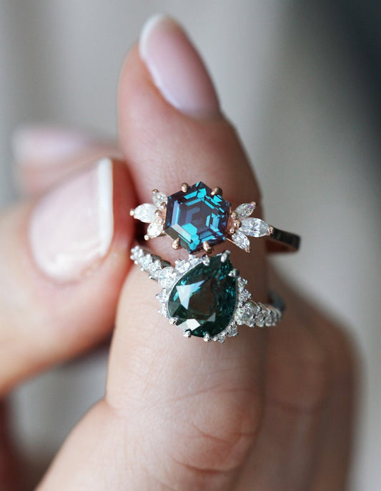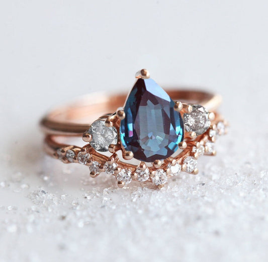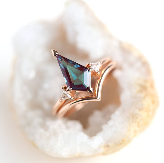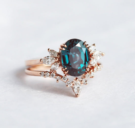 Vereničko prstenje sa aleksandritom očarava promenom boja u različitom svetlu i simboliše posebnu priču ljubavi. Pogledaj aleksandrit prsten u 14k roze zlatu ili dijamantski aleksandrit prsten.