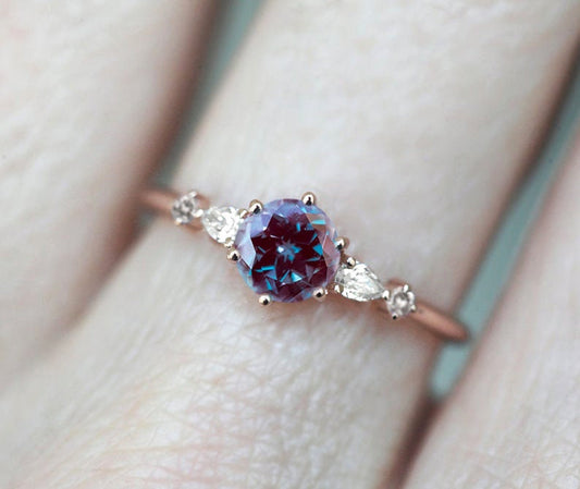 Vereničko prstenje sa aleksandritom očarava promenom boja u različitom svetlu i simboliše posebnu priču ljubavi. Pogledaj aleksandrit prsten u 14k roze zlatu ili dijamantski aleksandrit prsten.