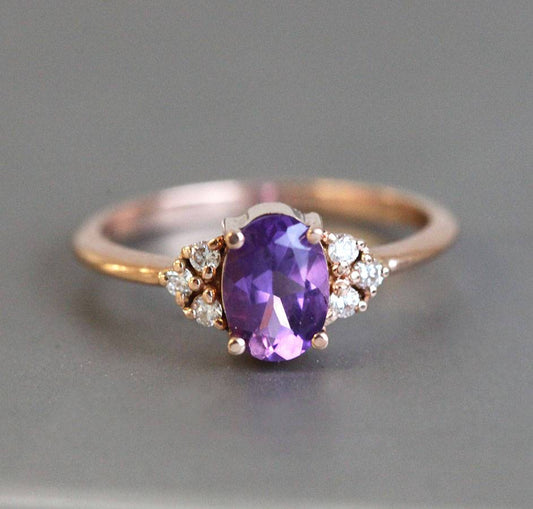 Upoznaj značenja i savete za negu u odeljku Ametist ili izaberi ručno izrađen komad sa bogatom bojom ametist prsten.
