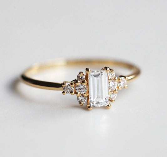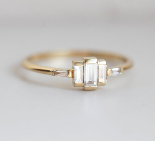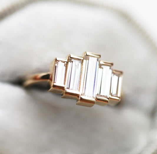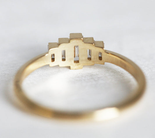 Kolekcija Art Deco dijamanata spaja geometriju, kontrast i čistu liniju u stil koji je podjednako glamurozan i moderan. Oštri rezovi i arhitektonske forme daju prstenju karakter i jasnoću.