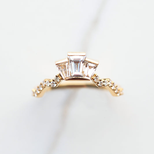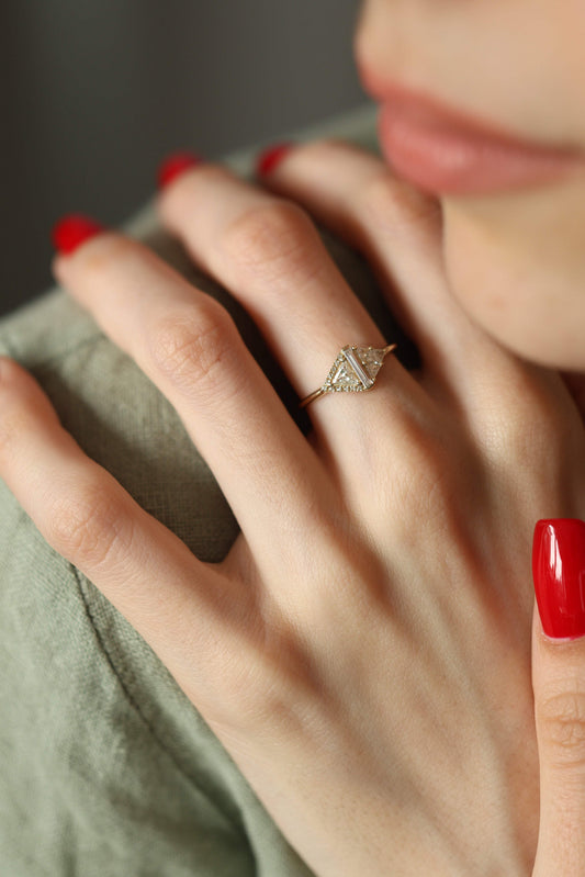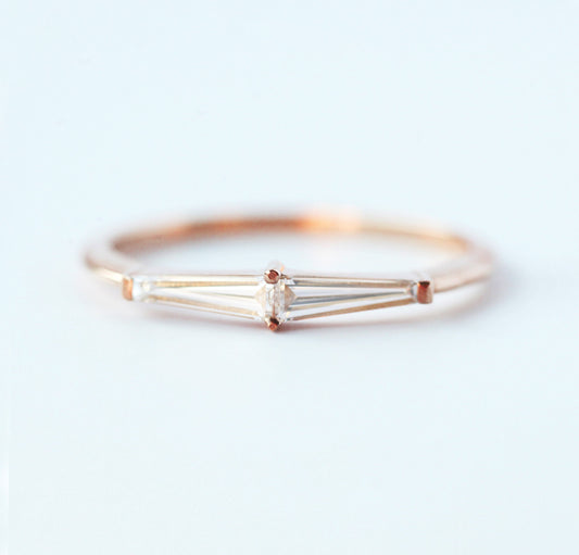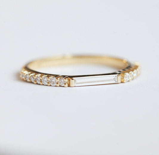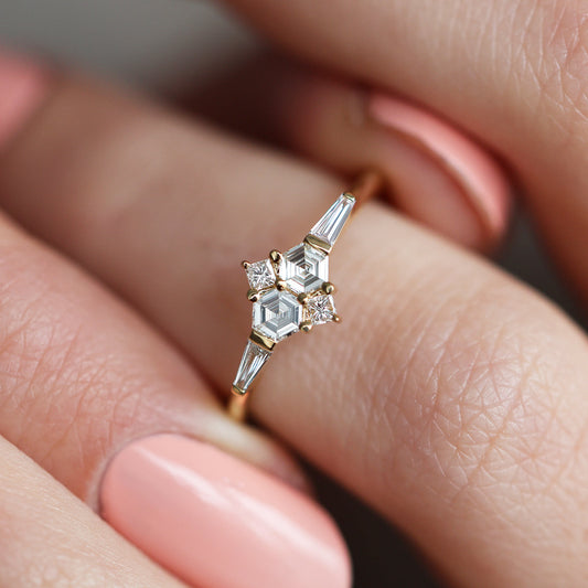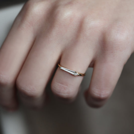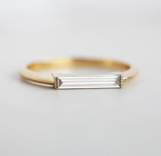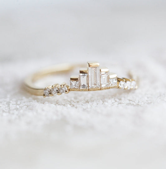 Dijamant - Baguette cut donosi grafičku preciznost i art-deco šarm. Paralelne fasete ističu jasnoću kamena i daju elegantan, arhitektonski karakter koji se sjajno kombinuje sa bočnim kamenjem i tankim burmama.