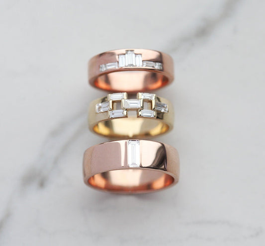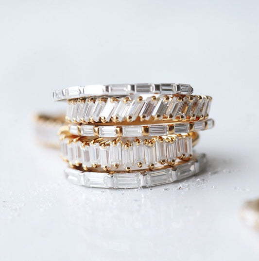 Za liničnu sofisticiranost izaberi Baguette cut prsten sa burmom ili pojačaj simetriju i sjaj modelom sa pet baguette dijamanata.