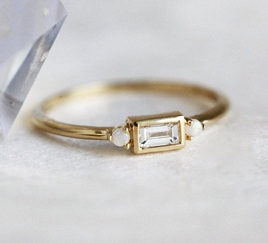 Dijamant - Baguette cut donosi grafičku preciznost i art-deco šarm. Paralelne fasete ističu jasnoću kamena i daju elegantan, arhitektonski karakter koji se sjajno kombinuje sa bočnim kamenjem i tankim burmama.