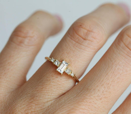Pogledaj grafičku lepotu u baguette smaragdu ili elegantan baguette dijamantski prsten.