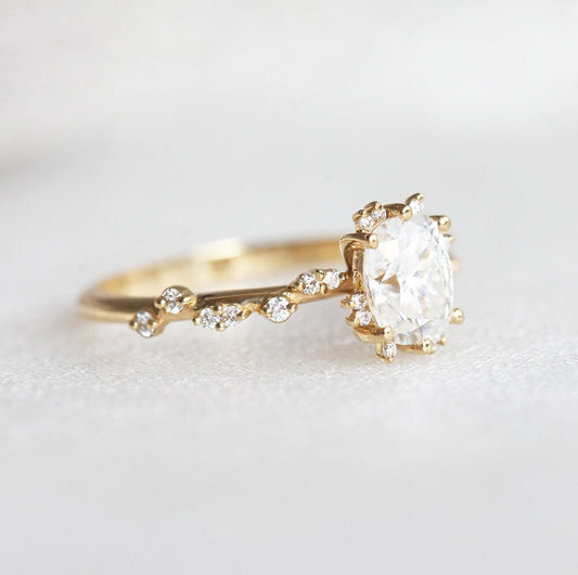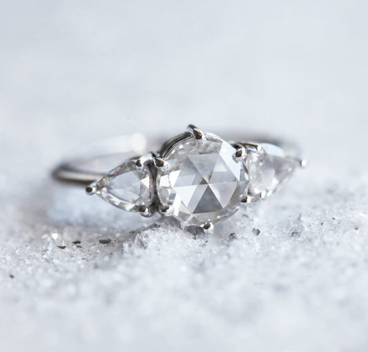Izdvajamo heksagon rose cut prsten i moderni sivi dijamantski verenički prsten.