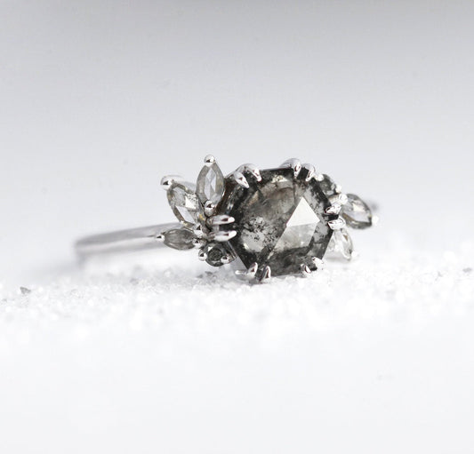Pogledaj modernu interpretaciju u belo zlato klaster prstenu i profinjenu varijantu dijamantskog klaster prstena.