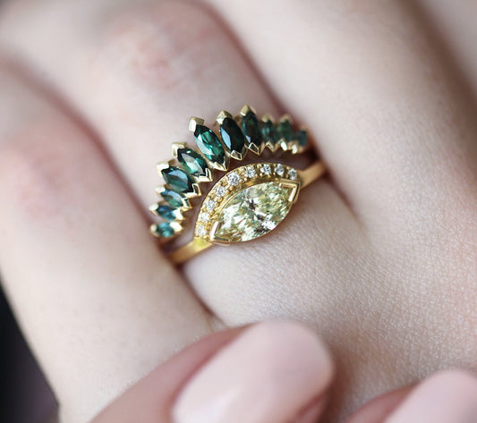 Sjajno pristaje uz tanke, zakrivljene burme i prstenove sa naglašenim ramenima, gde istaknute linije stvaraju elegantan, izdužen profil.
