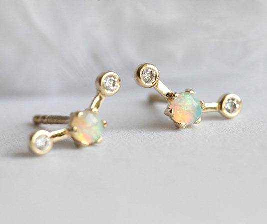 Izdvajamo profinjene 18k zakrivljene dijamantske minđuše i živopisne abalone minđuše u roze zlatu.