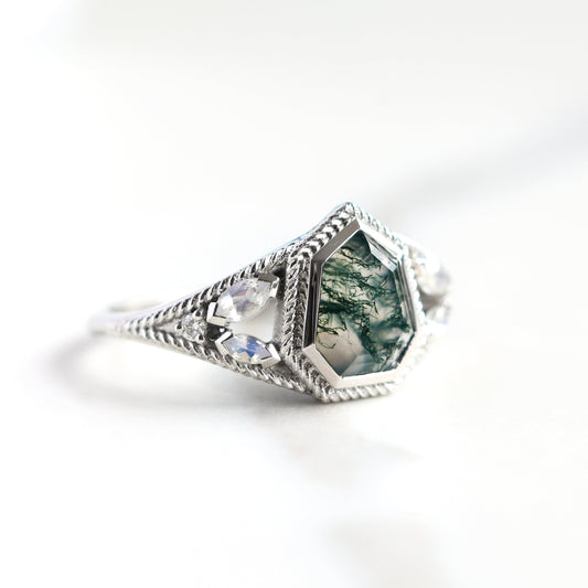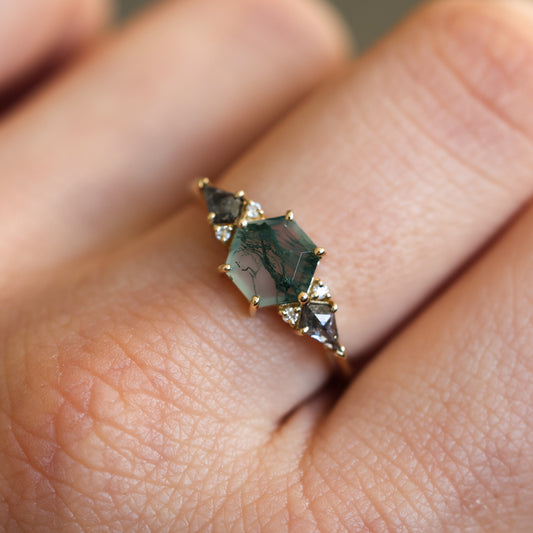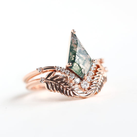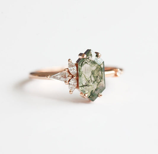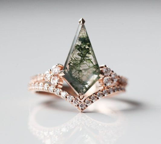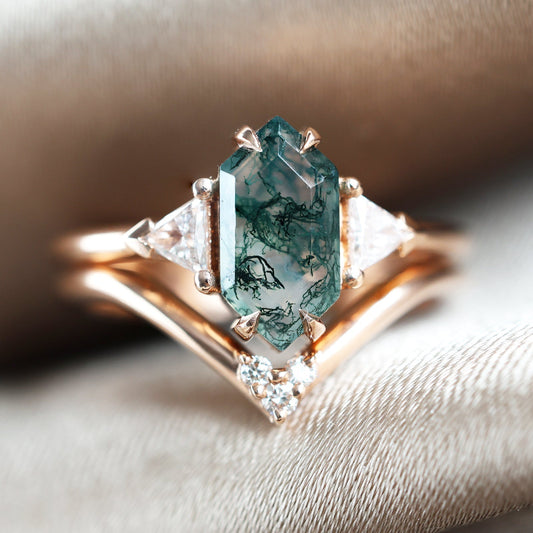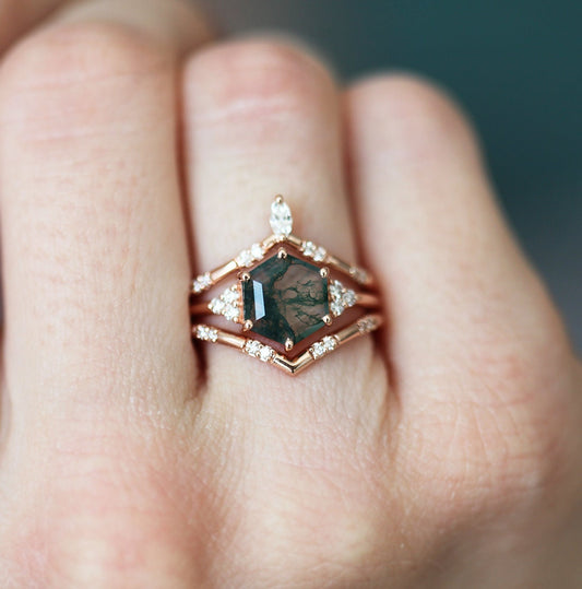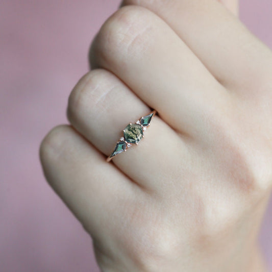 Prstenje sa Moss Agate donosi prirodne šare svakog kamena i mirnu, zemljanu paletu boja. Istraži set sa moss agateom ili moss agate prsten u roze zlatu.