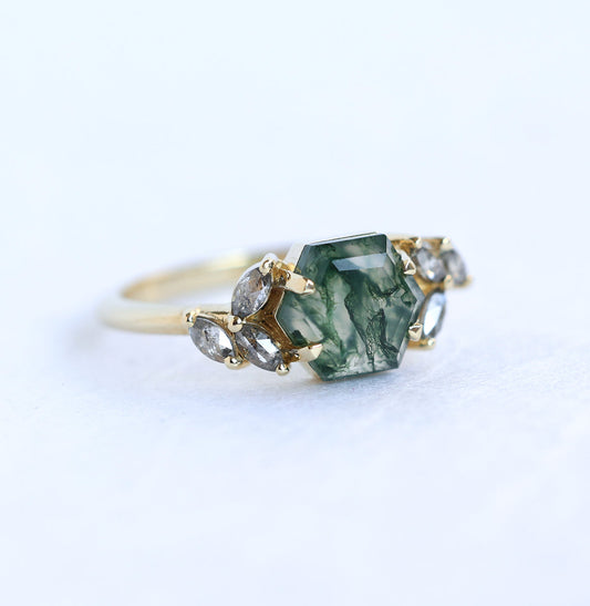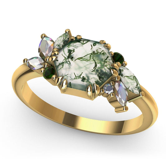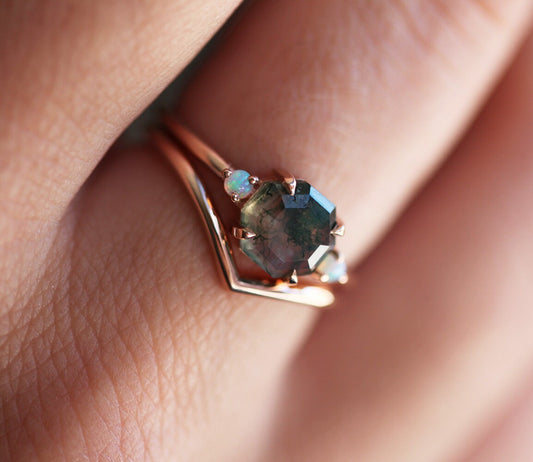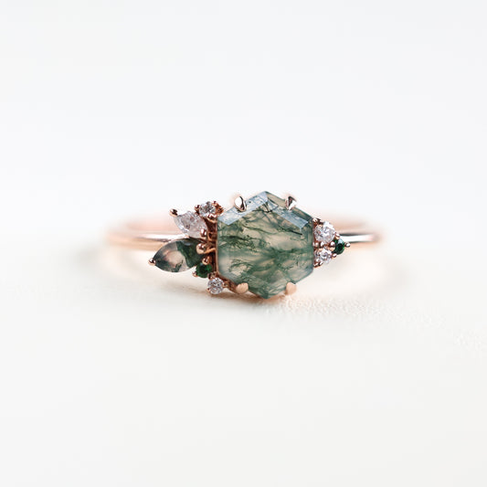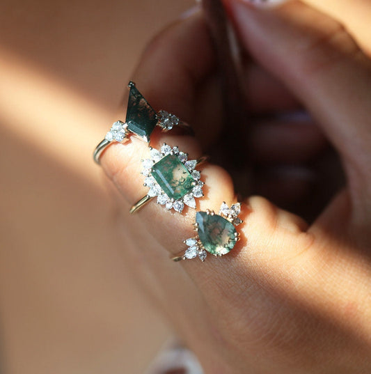 Prstenje sa Moss Agate donosi prirodne šare svakog kamena i mirnu, zemljanu paletu boja. Istraži set sa moss agateom ili moss agate prsten u roze zlatu.