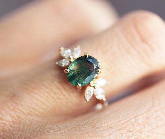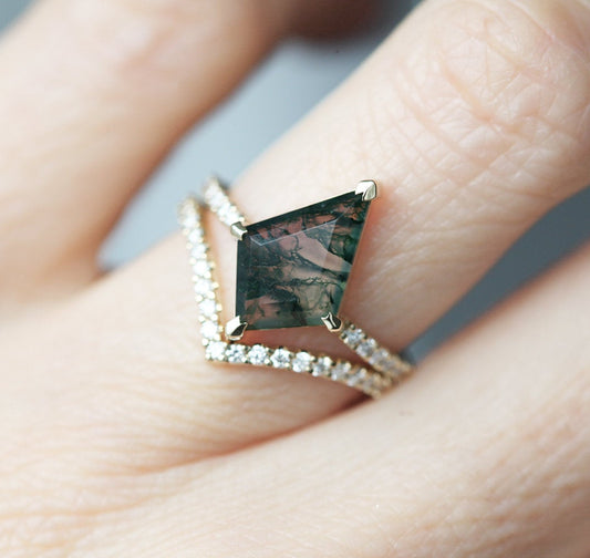 Prstenje sa Moss Agate donosi prirodne šare svakog kamena i mirnu, zemljanu paletu boja. Istraži set sa moss agateom ili moss agate prsten u roze zlatu.