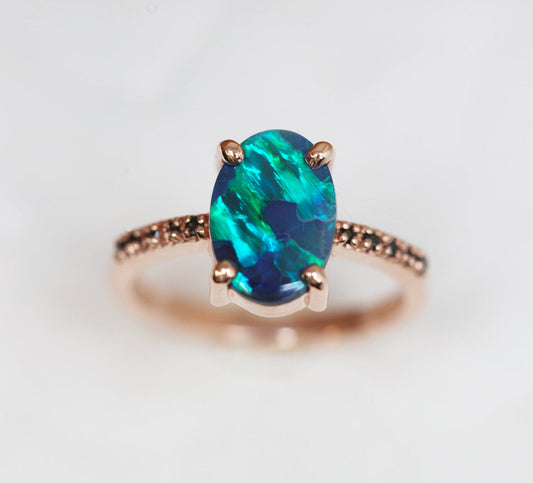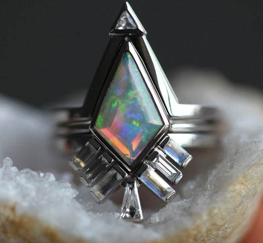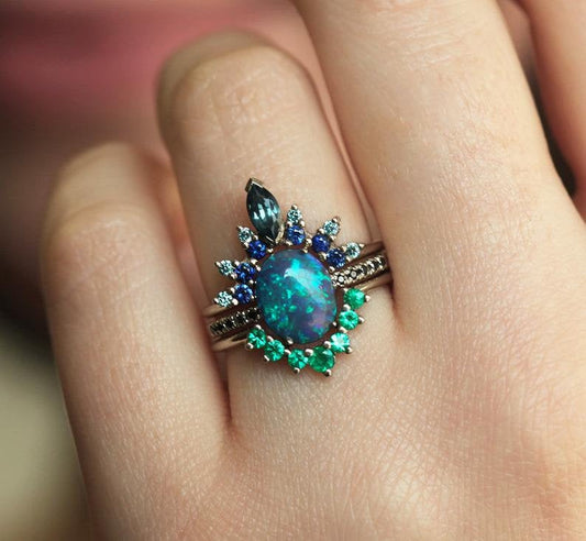 Prstenje sa opalom slavi igru boja i prelivanje svetlosti koje opal čini neponovljivim. Idealan je za posebne prilike i svakodnevni statement.