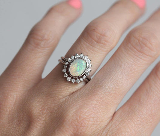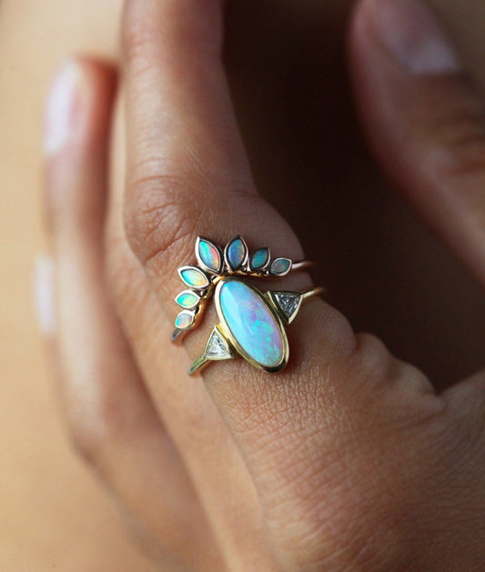 Prstenje sa opalom slavi igru boja i prelivanje svetlosti koje opal čini neponovljivim. Idealan je za posebne prilike i svakodnevni statement.
