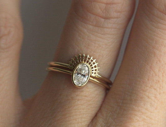 Odlično izgleda kao soliter ili u paru sa tankim, dijamantskim burmama, gde blago zaobljen profil daje prstenu mekoću i fluidnost.