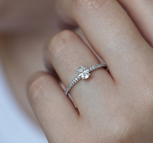 Istraži elegantan V oblik pave prsten ili klasični pave dijamantski prsten.
