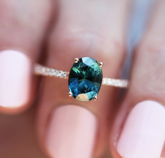 Izaberi pavé Sunčev kamen ili elegantni radiant safir sa pavé prstenom.