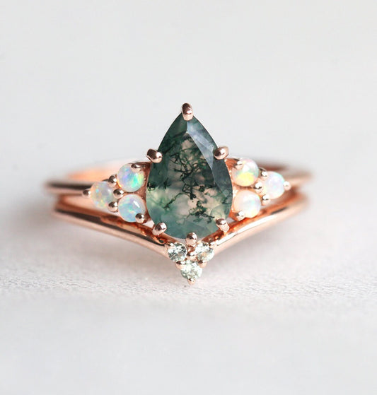 Doživi pastelni ton u pear cut safiru boje breskve ili magičnu iridescenciju u pear cut opalu.