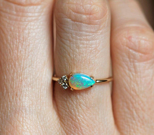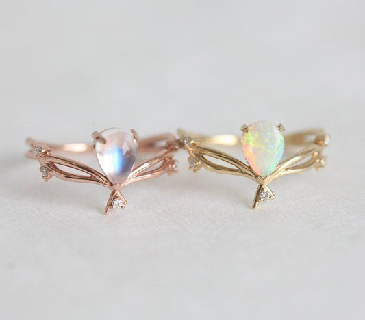Doživi pastelni ton u pear cut safiru boje breskve ili magičnu iridescenciju u pear cut opalu.