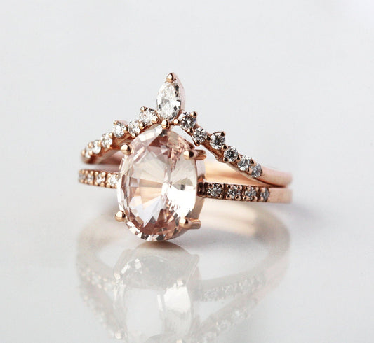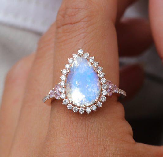 Doživi pastelni ton u pear cut safiru boje breskve ili magičnu iridescenciju u pear cut opalu.