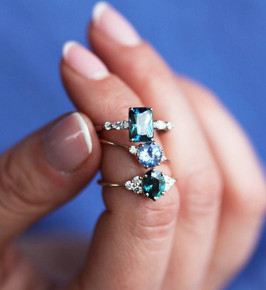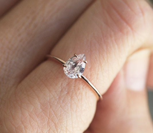 Doživi pastelni ton u pear cut safiru boje breskve ili magičnu iridescenciju u pear cut opalu.