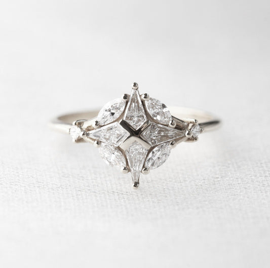 Otkrij čisti geometrijski stil sa kite dijamantskim prstenom ili minimalizam sa modernim romb prstenom.