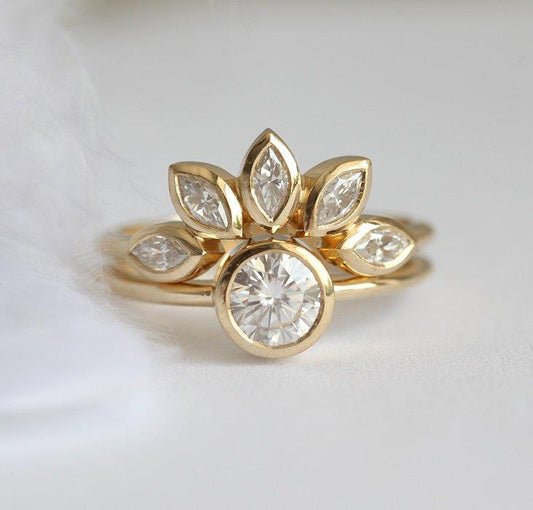 Setovi dijamantskog prstenja nude savršen balans sjaja i proporcija, bilo da voliš klasičan soliter sa pratećom burmom ili moderniji stil sa pavé detaljima. Svaki set je promišljeno sklopljen da prstenje savršeno naleže jedno uz drugo.