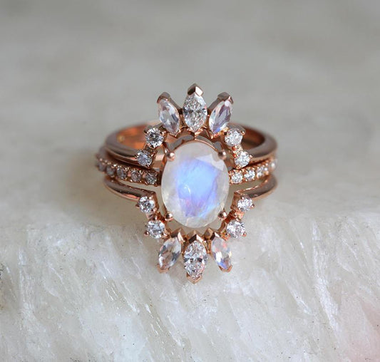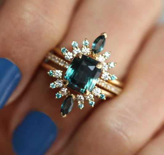 Setovi prstenja sa dragim kamenjem kombinuju boju i teksturu na način koji svakom stilu daje toplinu i dubinu. Uklopivi oblici prate linije centralnog kamena za besprekoran izgled.
