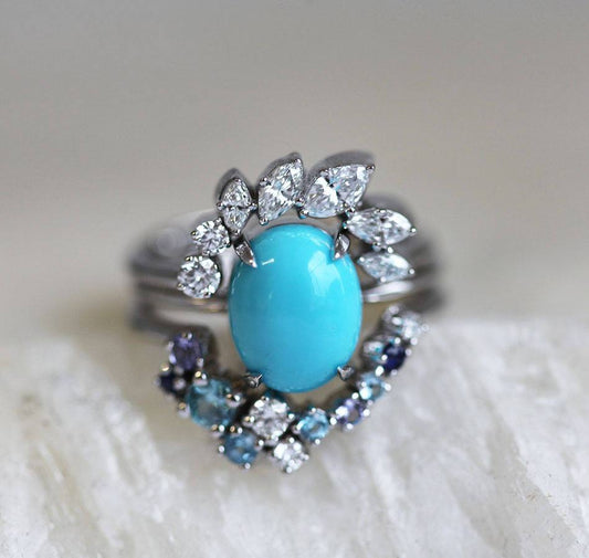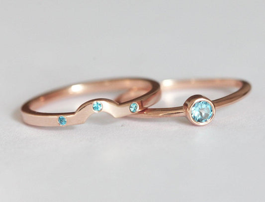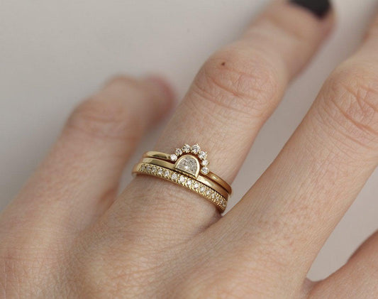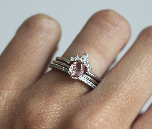 Setovi za venčanje donose usklađene prstenove koji se nose savršeno zajedno; istraži dijamantski set prstenja ili izaberi nežni morganit set.