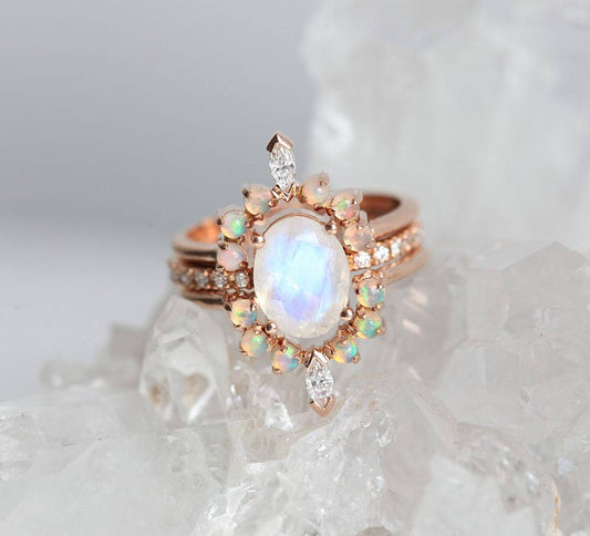 Setovi za venčanje donose usklađene prstenove koji se nose savršeno zajedno; istraži dijamantski set prstenja ili izaberi nežni morganit set.