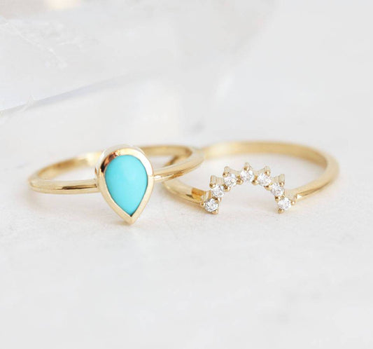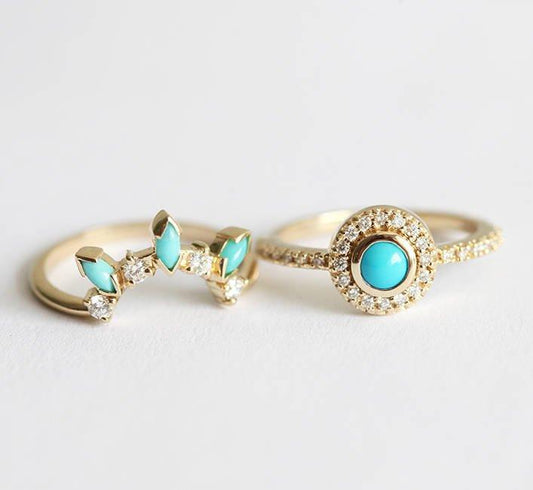 Pogledaj elegantan tirkizni prsten ili romantičan model sa dijamantskom polukrunom tirkiz i dijamant.