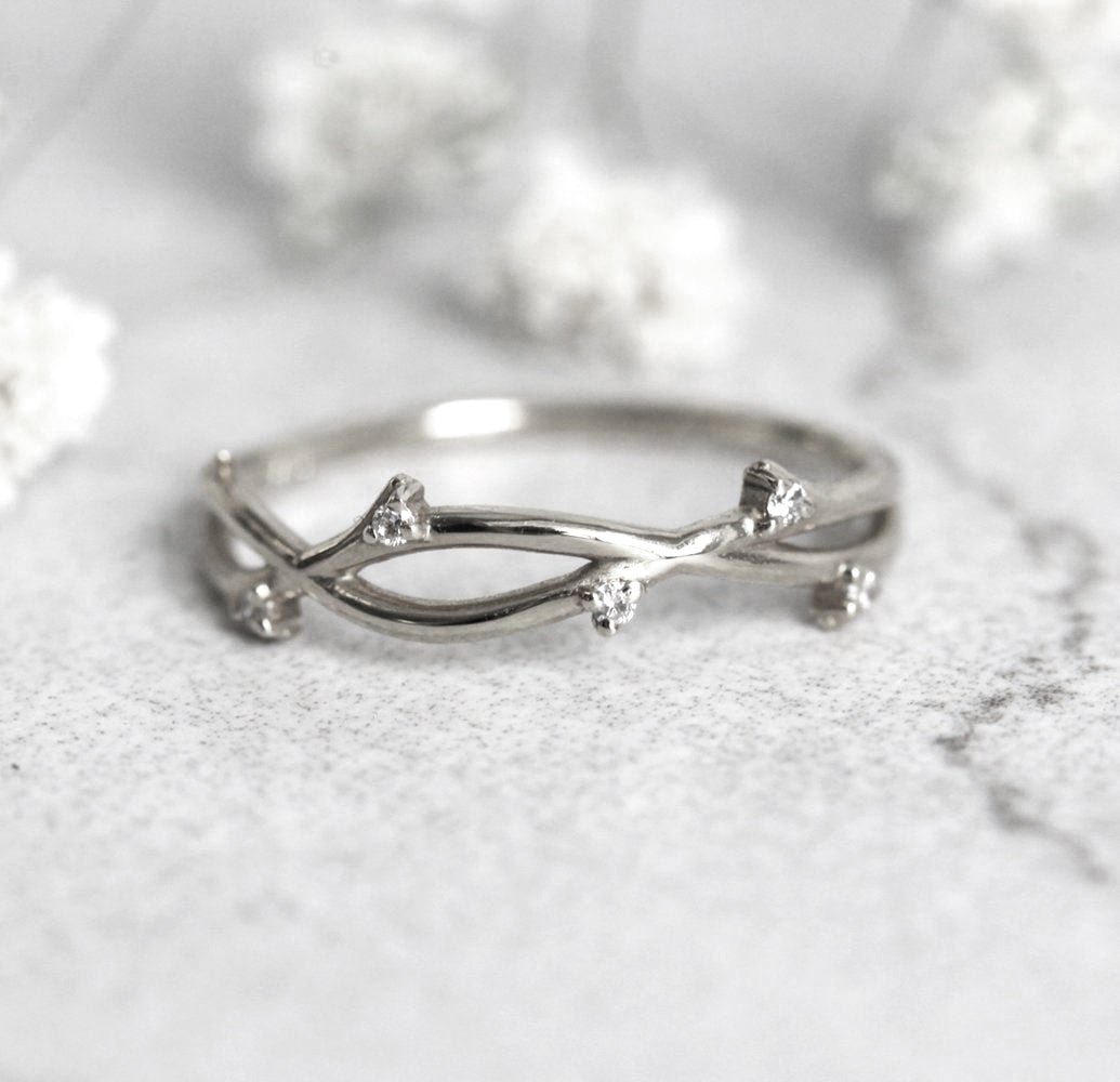 JEDINSTVENI TANAK PRSTEN OD GRANE SA DIJAMANTIMA