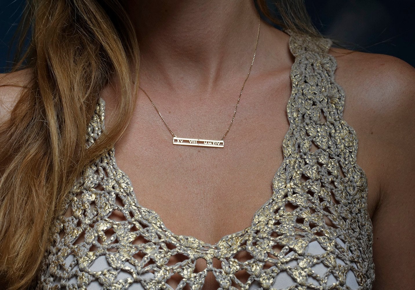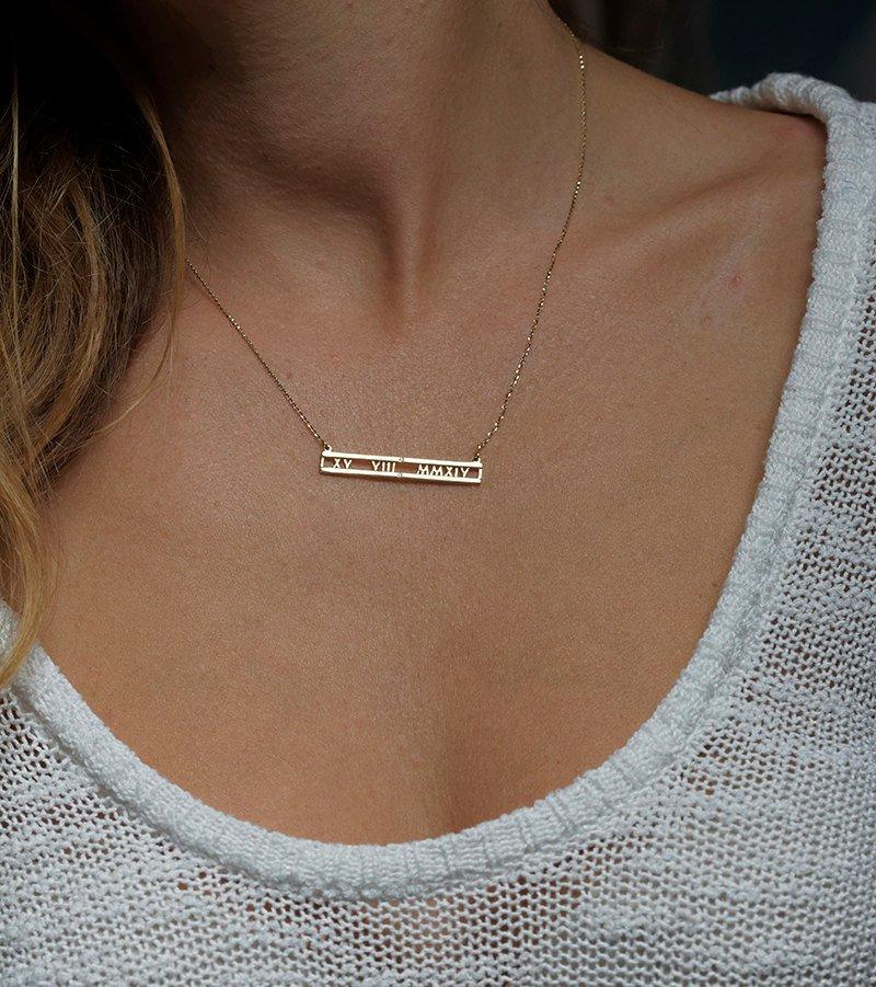 Elegantna personalizovana ogrlica sa rimskim brojevima i dva dijamanta u sredini - savršen način da izrazite ljubav i obeležite poseban dan. Molimo vas da ostavite poruku sa brojevima ili nas kontaktirate. Ako želite ogrlicu po meri, obratite nam se pre kupovine.