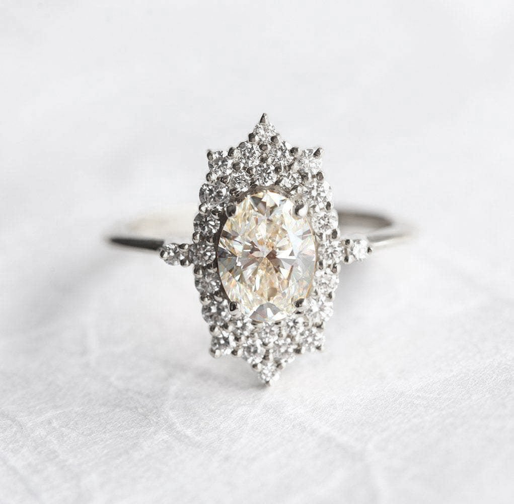 Ovaj nežan prsten odiše elegancijom kraljice, kao što mu ime i kaže. Centralni 1,5ct lab dijamant okružen je halo prstenom od lab dijamanata za dramatičan izgled. Centralni kamen može biti prirodni ili lab dijamant ili safir po zahtevu.