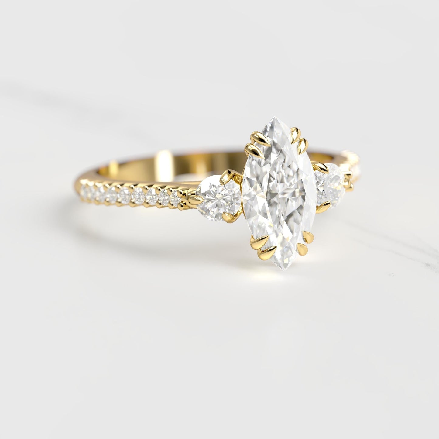 Prsten sa dijamantskim soliterom u obliku marquise sa akcentnim kamenjem
