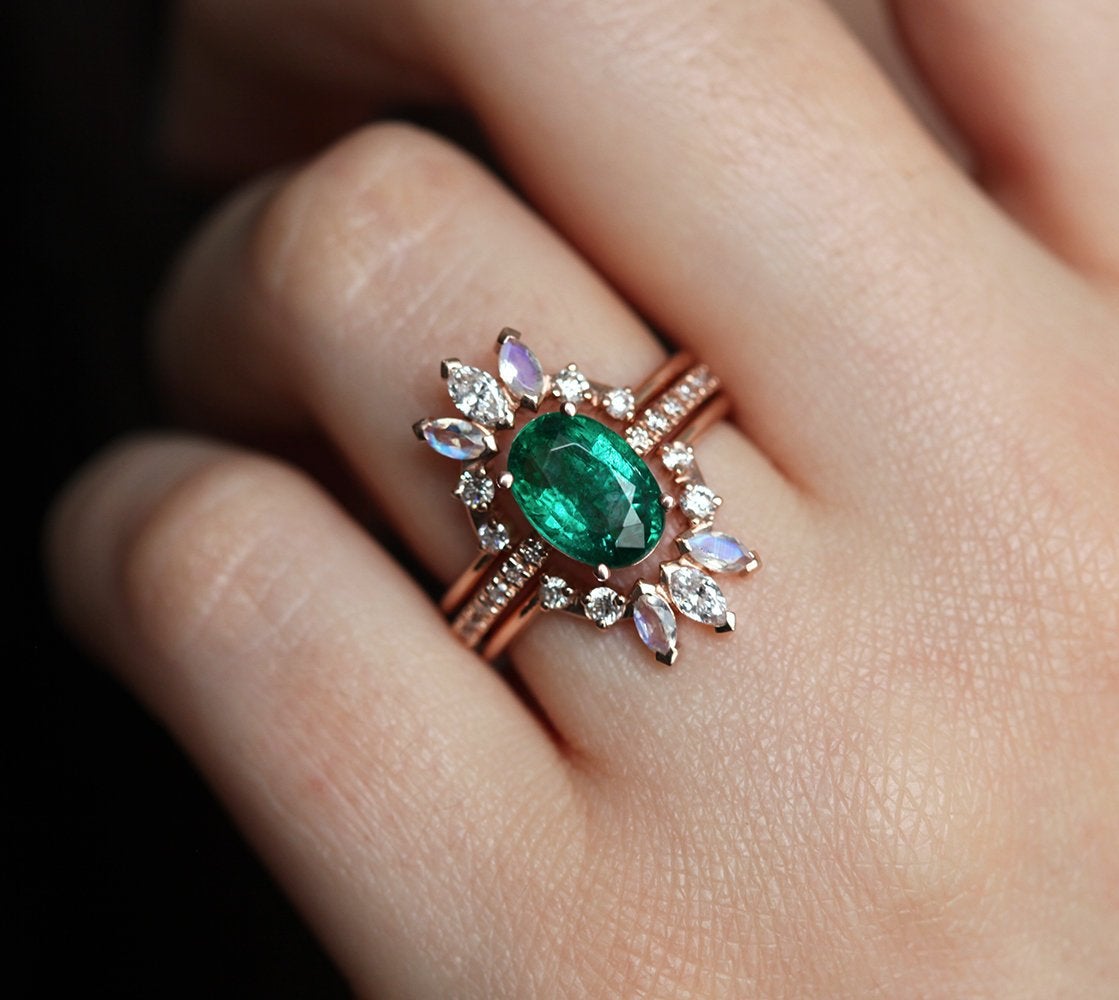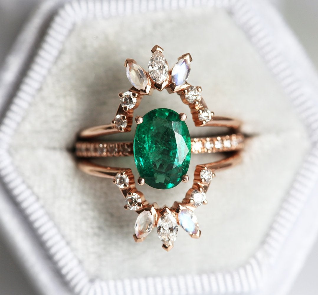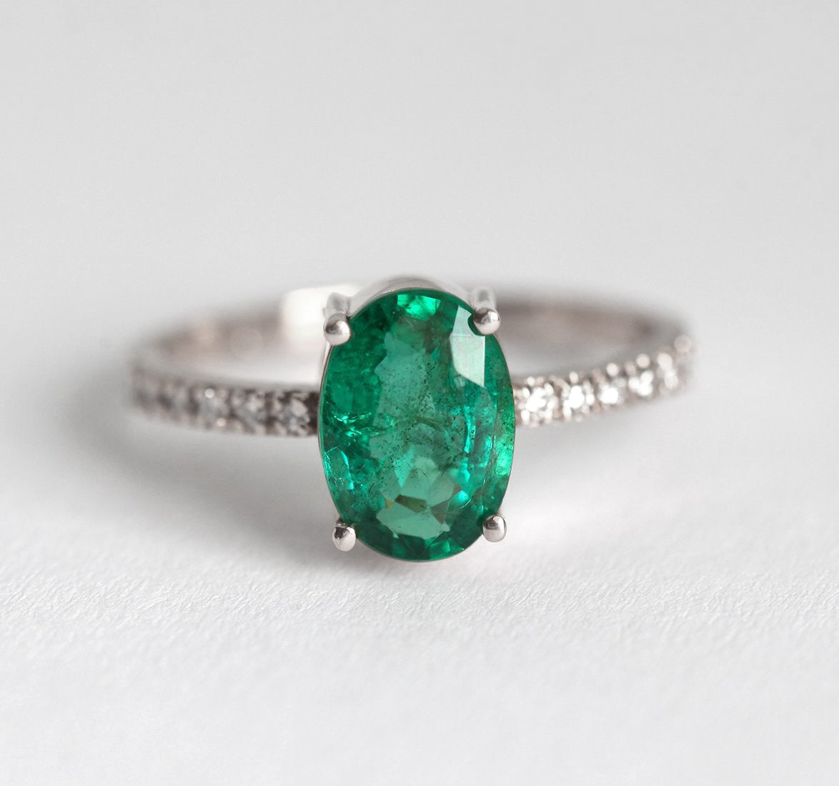 Stella prsten odiše prirodnom raskoši – smaragd od 2 ct u ovalnom obliku zrači intenzivnom zelenom bojom koja je očaravajuća i luksuzna. Uparen sa belim dijamantima u pavé stilu, ovaj prsten je deo našeg potpisnog dizajna.