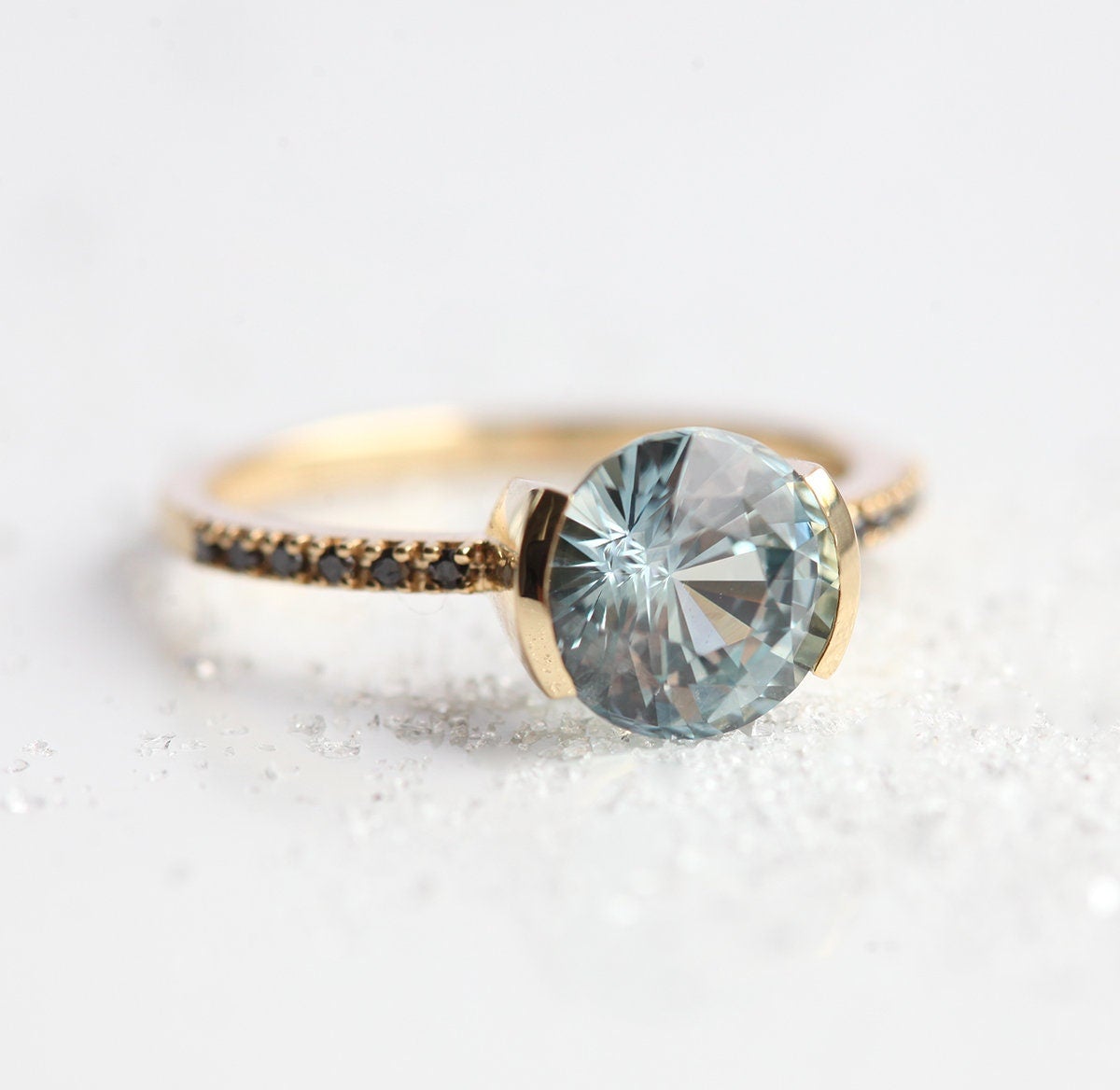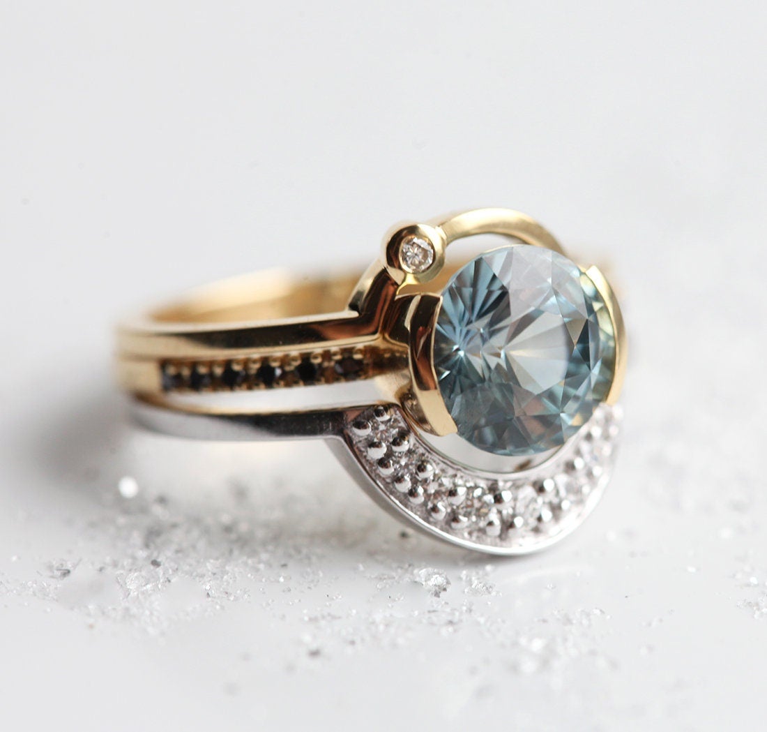 Naš Eileen prsten spaja dva prelepa kamena – safire i crne dijamante u moderan i upečatljiv dizajn. Oblik centralnog kamena posebno dolazi do izražaja, dajući dodatnu dubinu celokupnom izgledu.