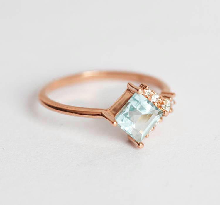Luca klaster prsten sa akvamarinom kvadratnog oblika i dijamantima