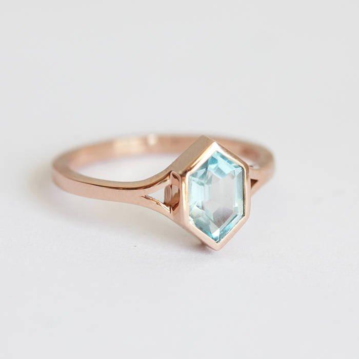 Verujemo da najjednostavnije stvari donose najveću radost. Ovaj moderan akvamarinski prsten sa elegantnim otvorenim dizajnom idealan je način da izrazite ljubav. Jednostavan i graciozan, može biti izrađen i sa drugim dragim kamenjem po želji.