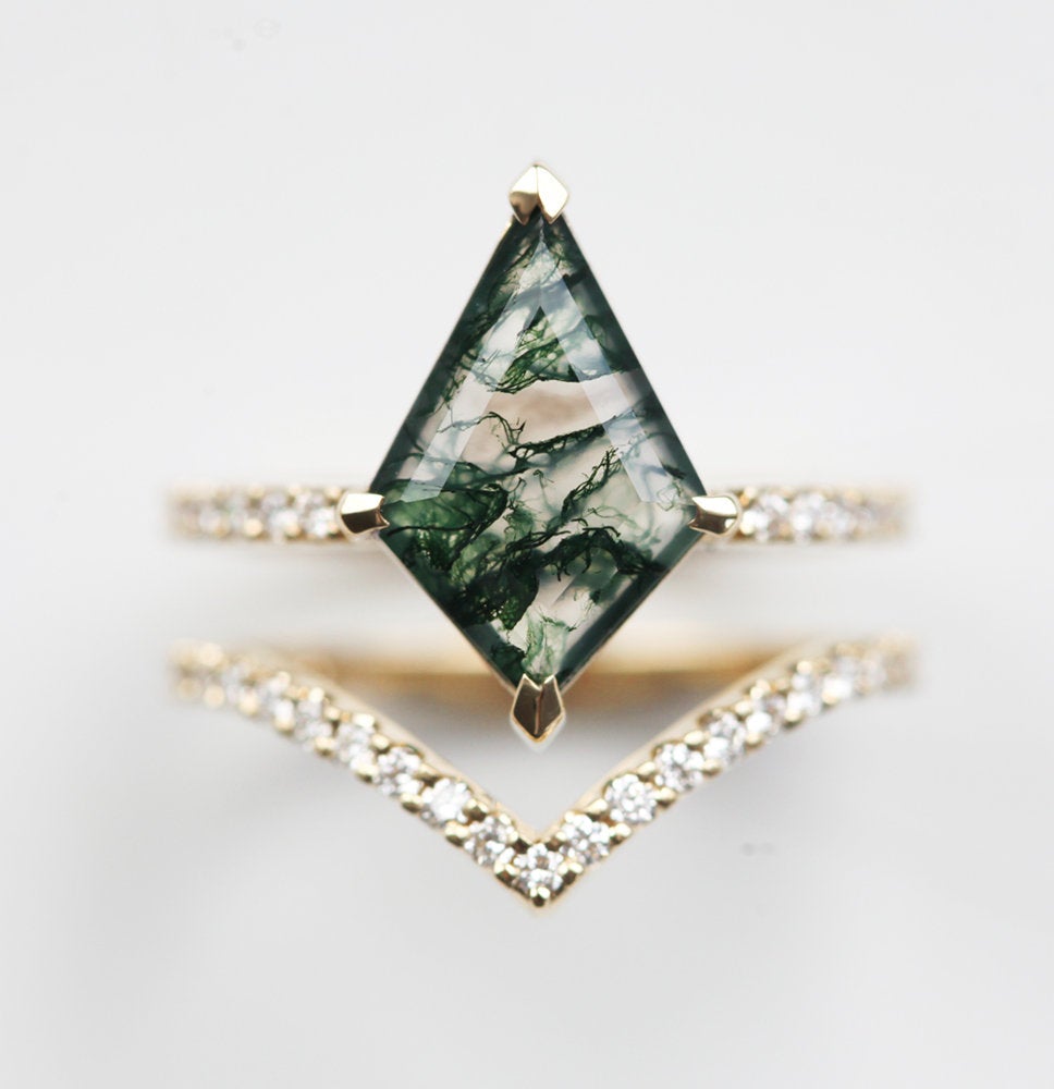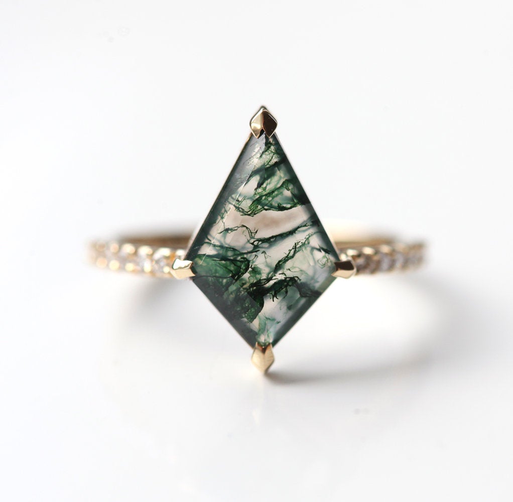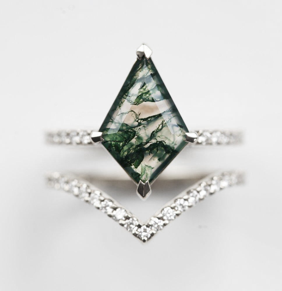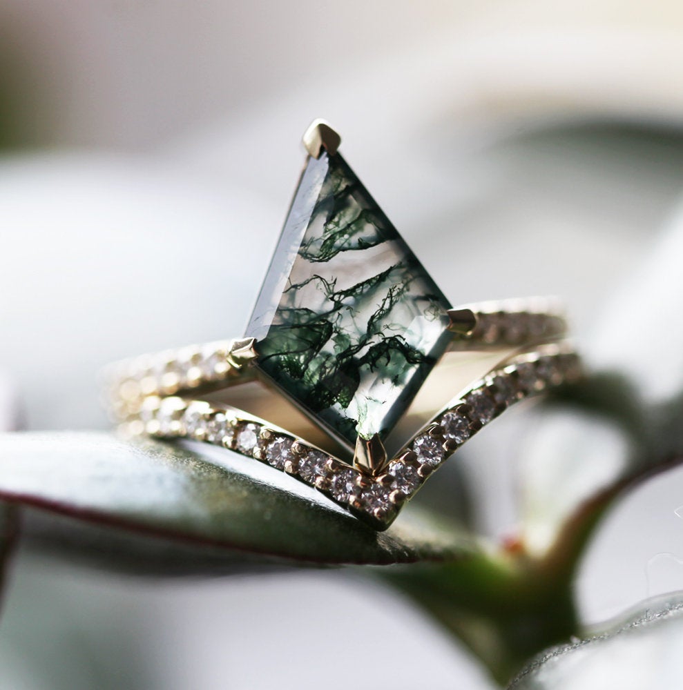 Anna prsten set sa moss agate-om i dijamantom romb oblika