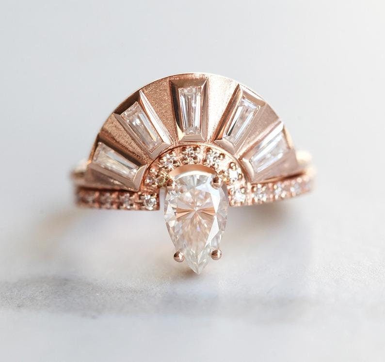 Art Deco baguette dijamantski nesting prsten