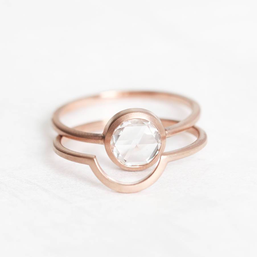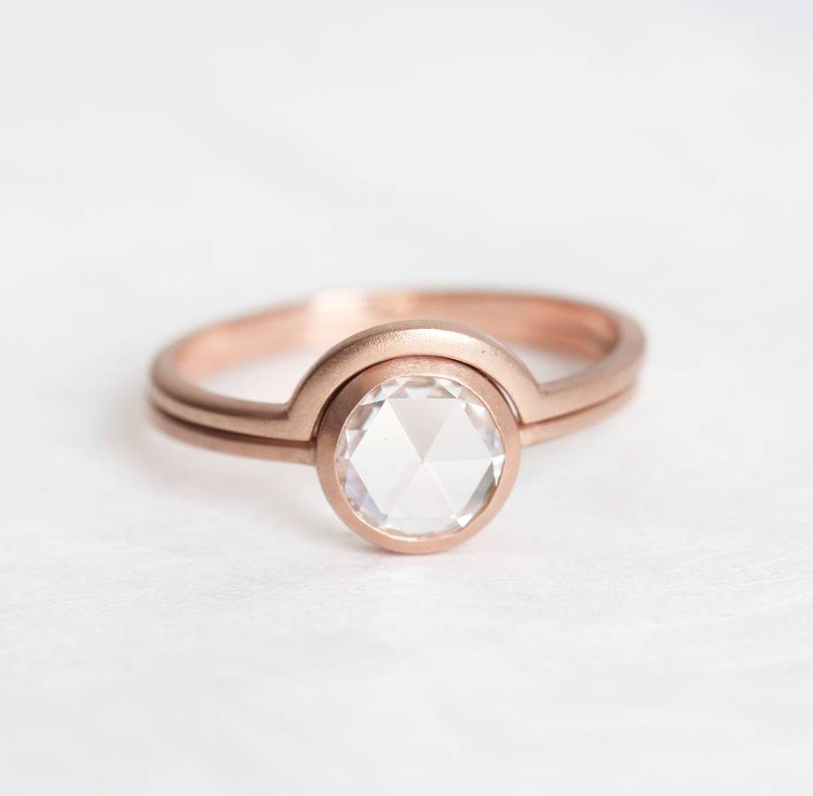 Moderan i nežan način transformacije klasičnog solitaire dizajna u romantičnu opciju da kažete „Volim te“. Prikazuje rose cut laboratorijski dijamant kao centralni kamen i minimalistički prsten, ovaj dizajn će graciozno krasiti prst vaše voljene osobe. Cena je za SET.