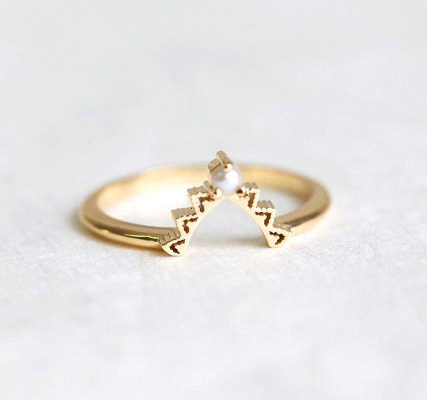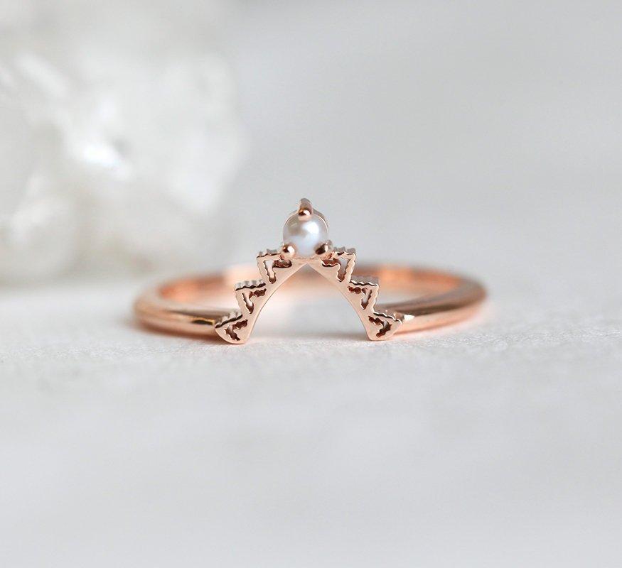 Nežni zlatni prsten sa motivima čiške i 2mm belim biserom koji se može prilagoditi kako bi savršeno odgovarao Vašem prstenu. VAŽNO: Ukoliko želite da prsten odgovara već postojećem prstenu, pošaljite nam slike vašeg prstena spreda, sa strane i odozgo. Na taj način naši dizajneri mogu označiti dimenzije koje je potrebno da nam dostavite kako bismo ovaj prsten savršeno prilagodili vašem.