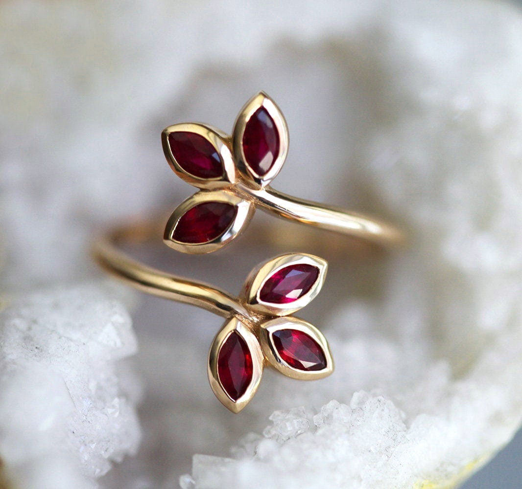 Marsha cvetni prsten otvorenog dizajna sa marquise cut rubinom