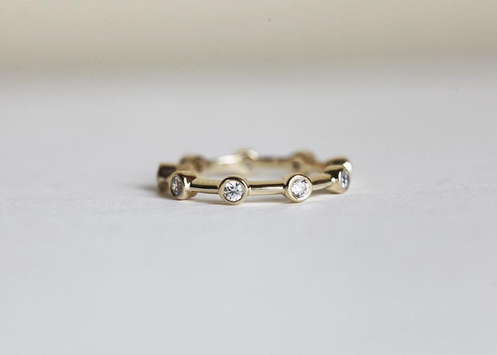 Naš Kai dijamantski prsten je ženstvena alternativna verzija vanvremenskog dijamantskog prstena. Sa deset dijamanata koji ga krase, stvara nežan, jednostavan i moderan prsten za nošenje samostalno ili u kombinaciji.