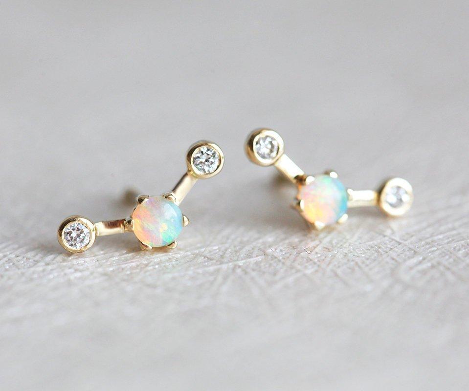 Prelepe minđuše sa australijskim opalom i dijamantima koje naglašavaju lepotu dame koja ih nosi.
