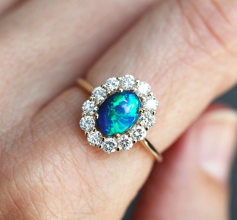 Napomena: Prikazani prsten je prodat. Možete izabrati drugi crni opal kontaktiranjem pre kupovine. Cena zavisi od izbora kamena.