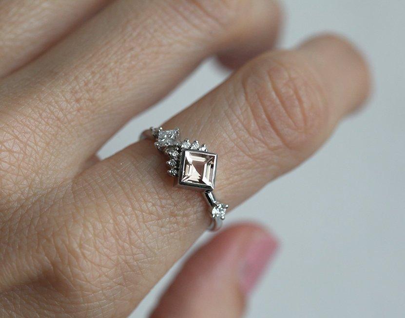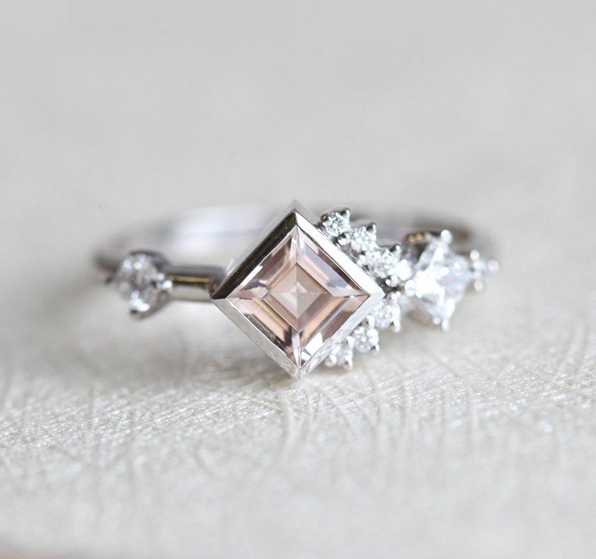 Dozvolite da vas očara naš klaster prsten sa princess cut morganitom i dijamantima. Ovaj luksuzni komad sadrži morganit u bezel postavci, okružen grupom većih dijamanata, koji zrače vanvremenskom elegancijom i sofisticiranošću.