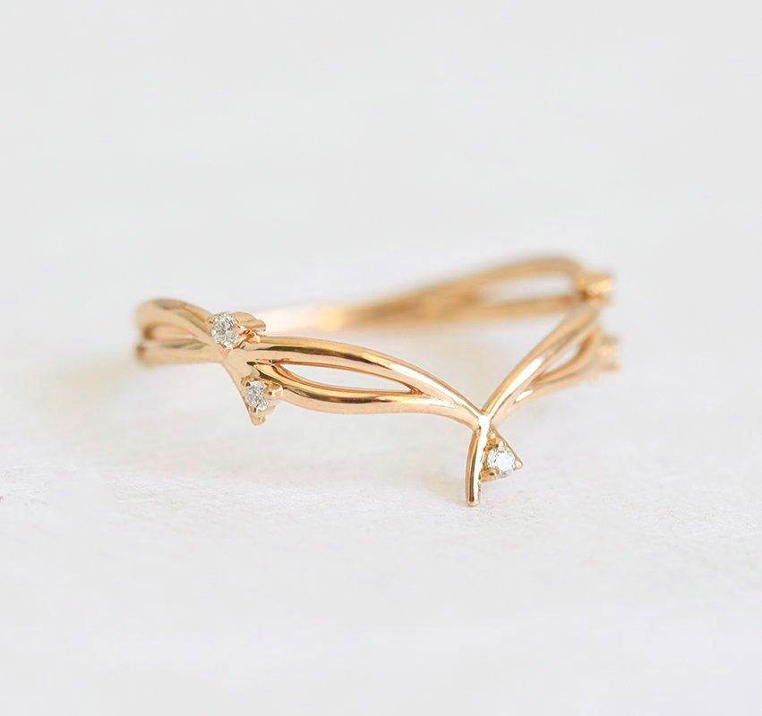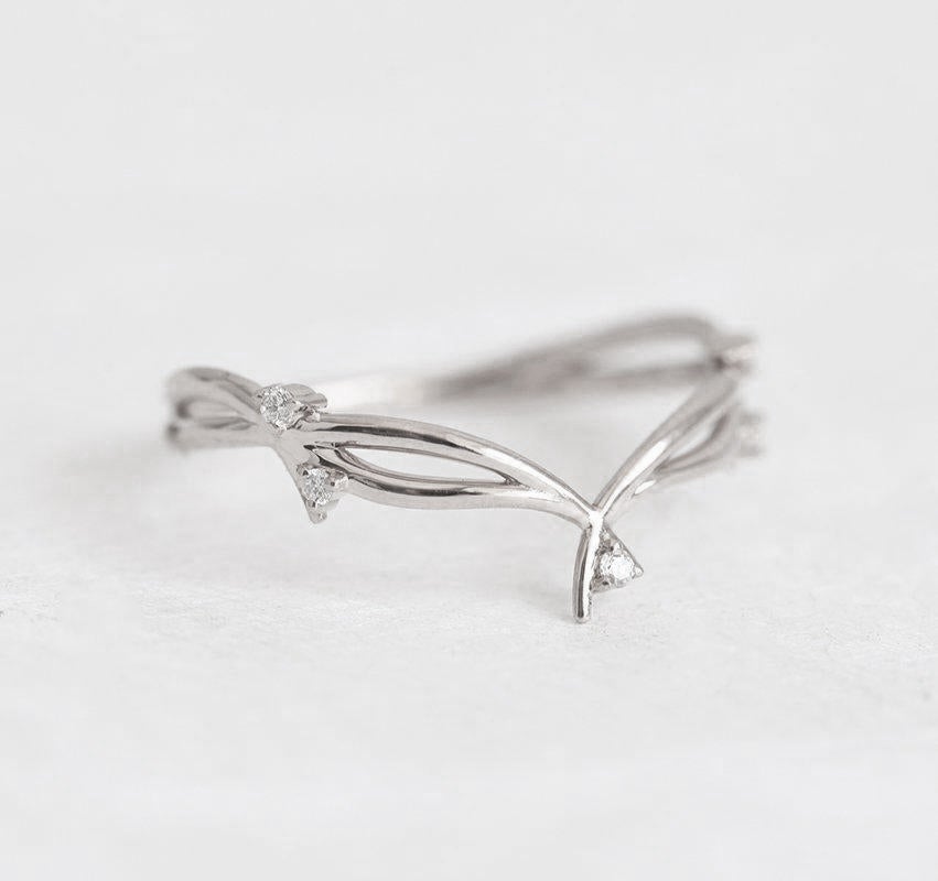 Jednostavan prsten u obliku grane sa prelepom postavkom belih dijamanata koji sijaju u cvetnom stilu. Ovaj nežan prsten idealan je za svaku priliku.