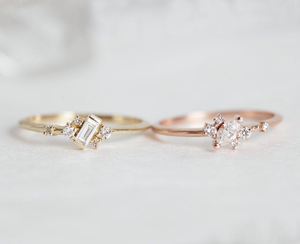 Evo još dva izuzetna komada za koje verujemo da će savršeno upotpuniti vaš stil: Dora prsten set sa laboratorijskim aleksandritom i Daphne prsten sa baguette cut mosa agate dijamantom .