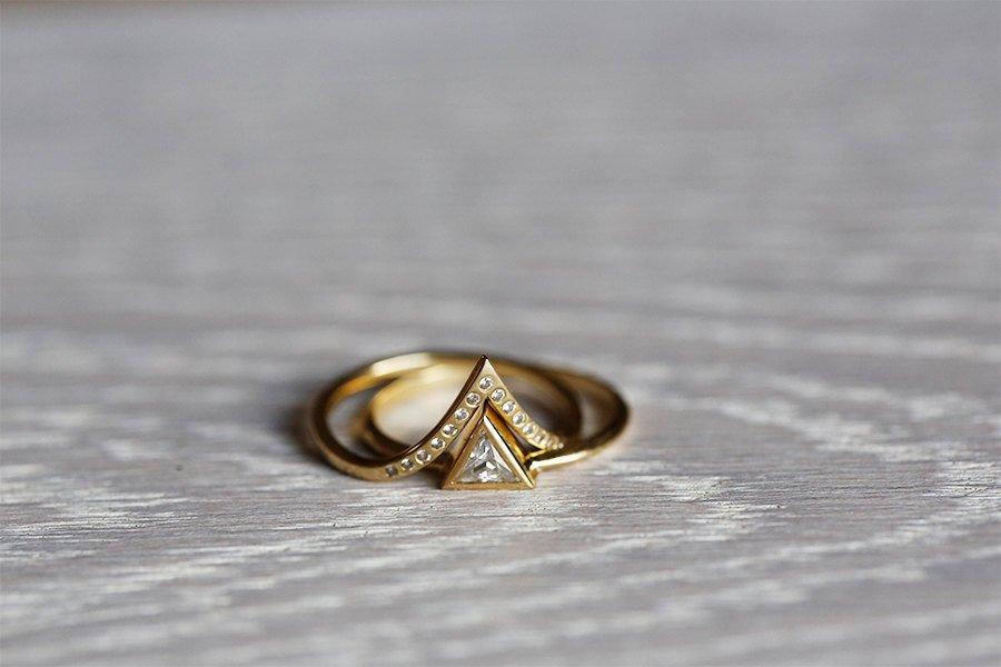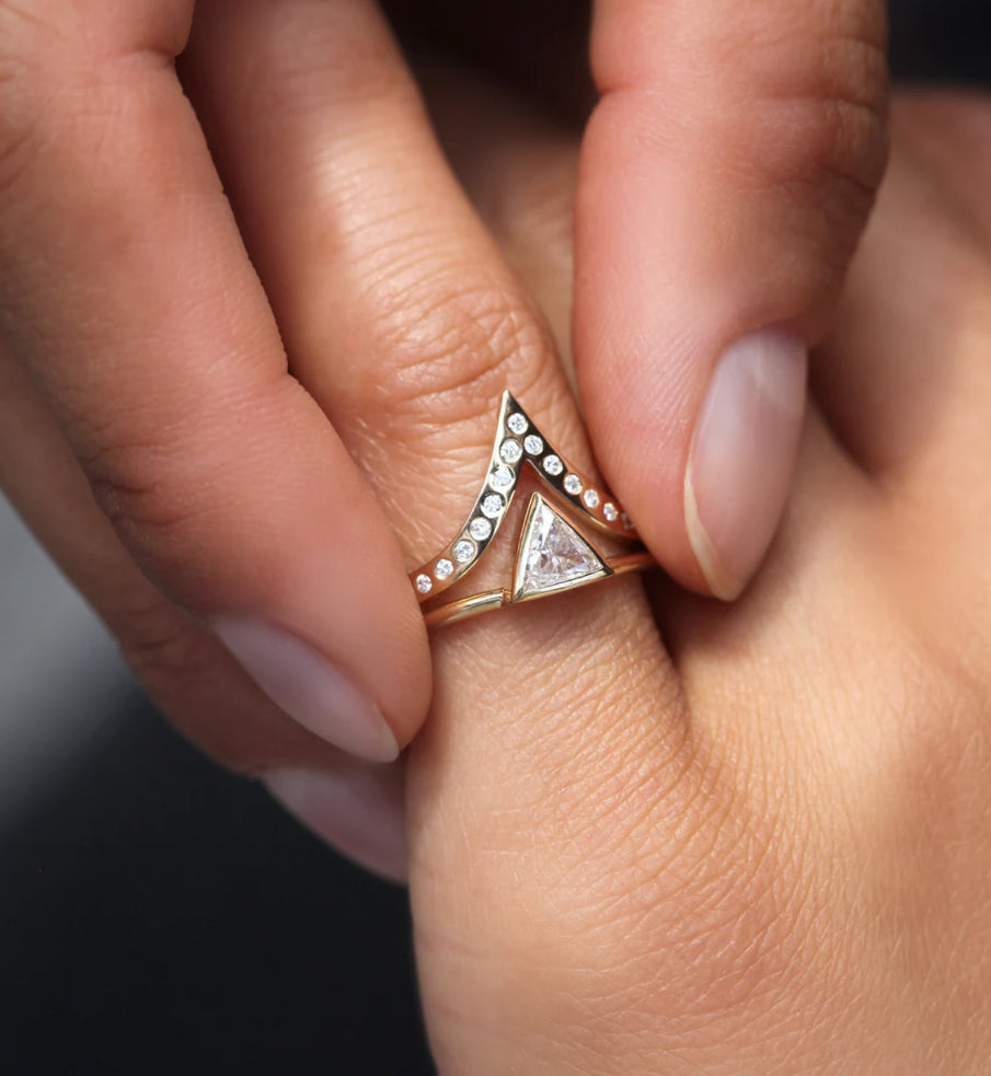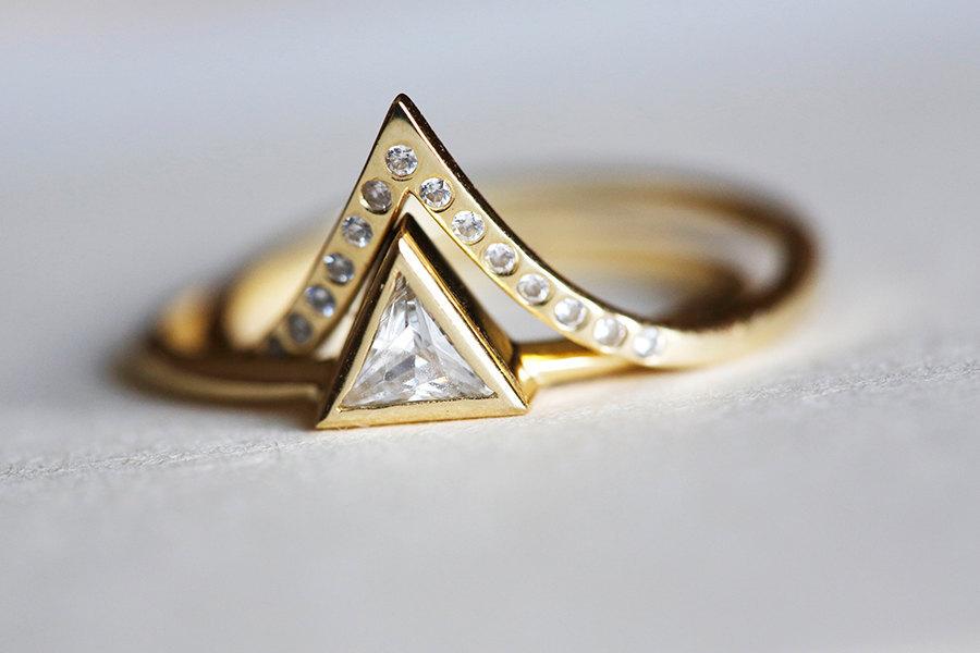 Ovaj moderan i prelep dijamantski set je savršen način da obeležite svoj poseban dan. Sa trouglastim uzorkom i luksuznim sjajem, ova kombinacija je idealna da impresionira elegantnu i sofisticiranu damu.